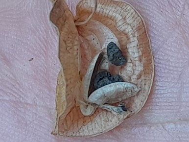 열매가 터지면서 검은 종자가 나옵니다.