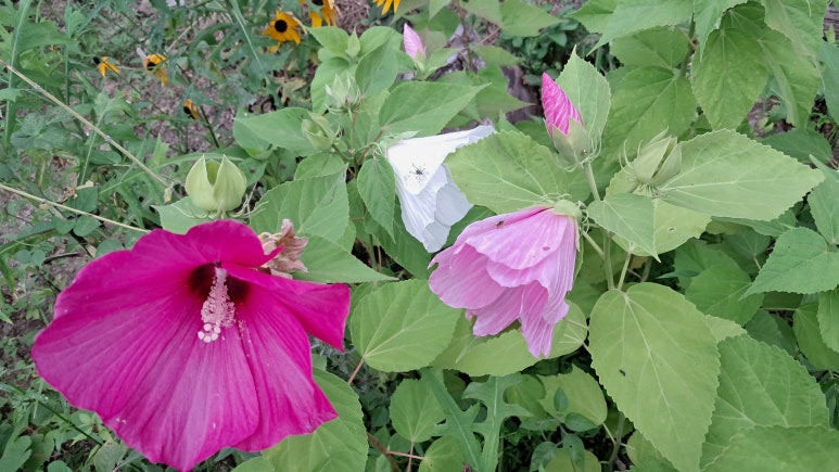 부용의 꽃은 흰색, 연분홍, 붉은색등 다양하게 피며