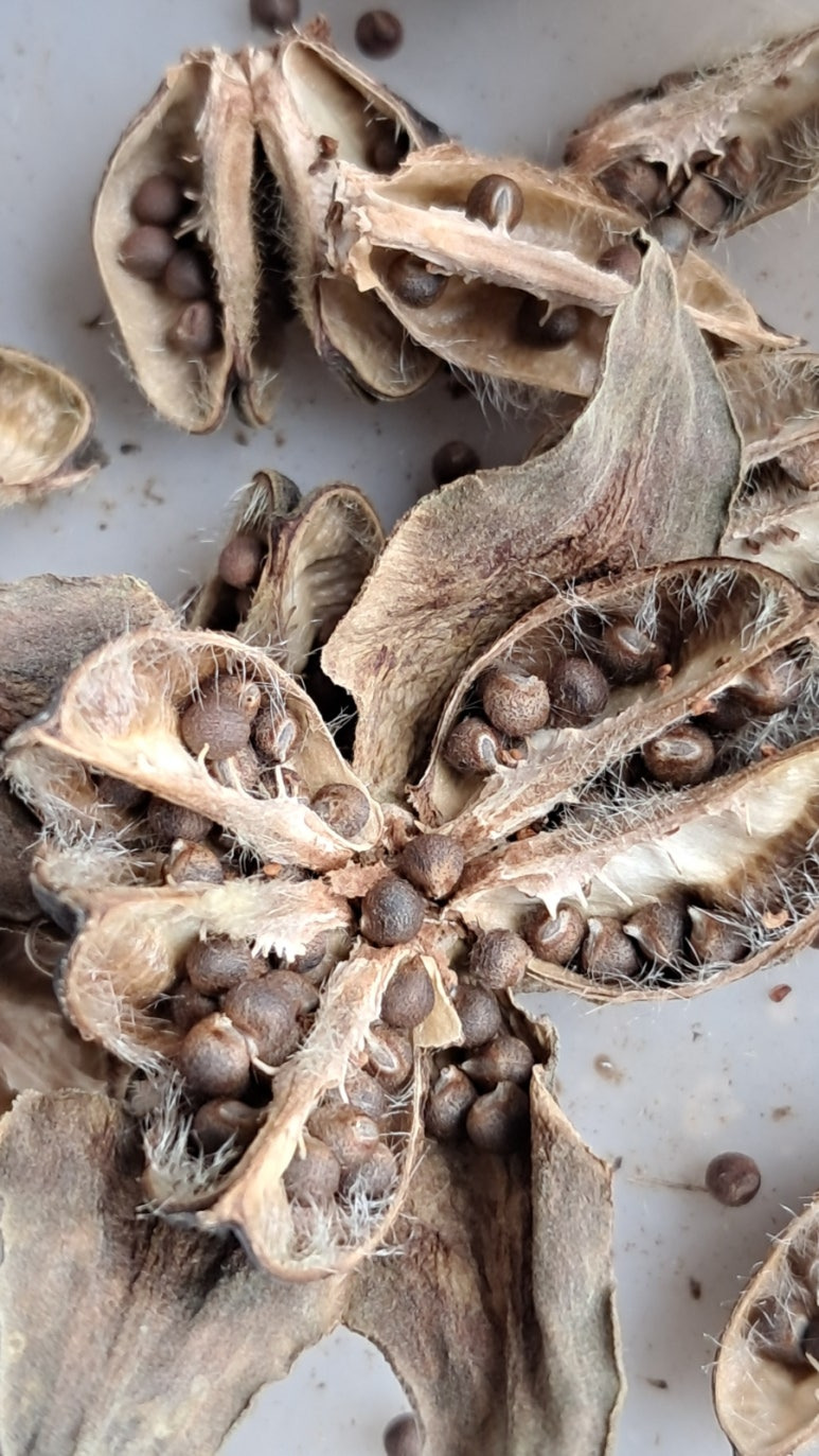 채취후에 바람에 말리면 꼬투리가 갈라지면서 종자가 나옵니다.
