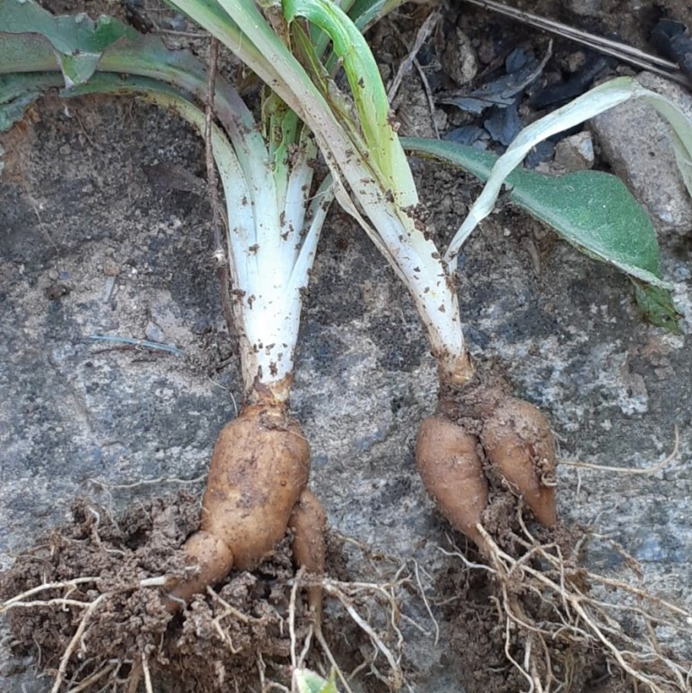 이른봄에 땅을 파보면 왕고들빼기의 알뿌리를 볼 수 있습니다.