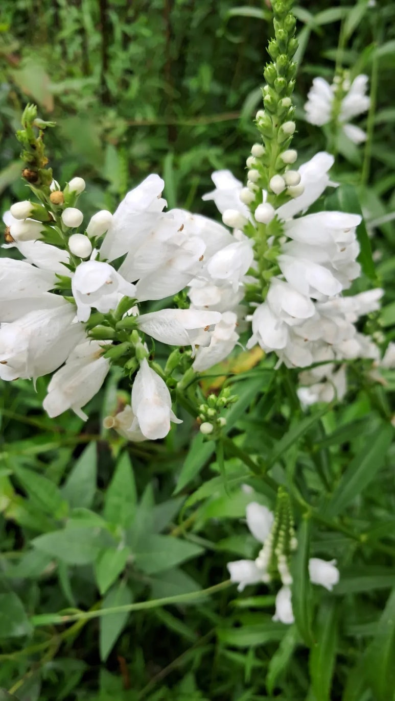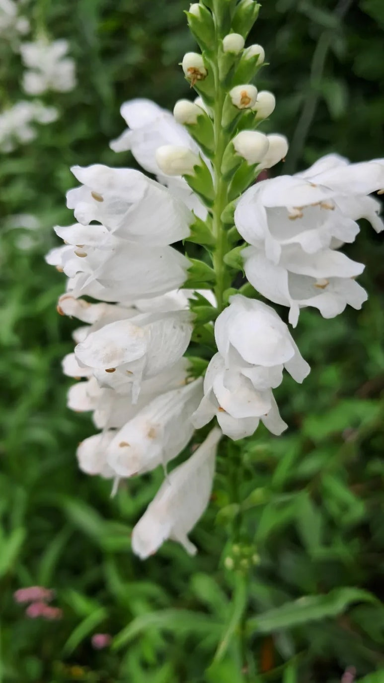 꽃은 꽃대의 아래에서부터 위로 피며 분홍색 꽃과 흰색의 꽃을 피웁니다.